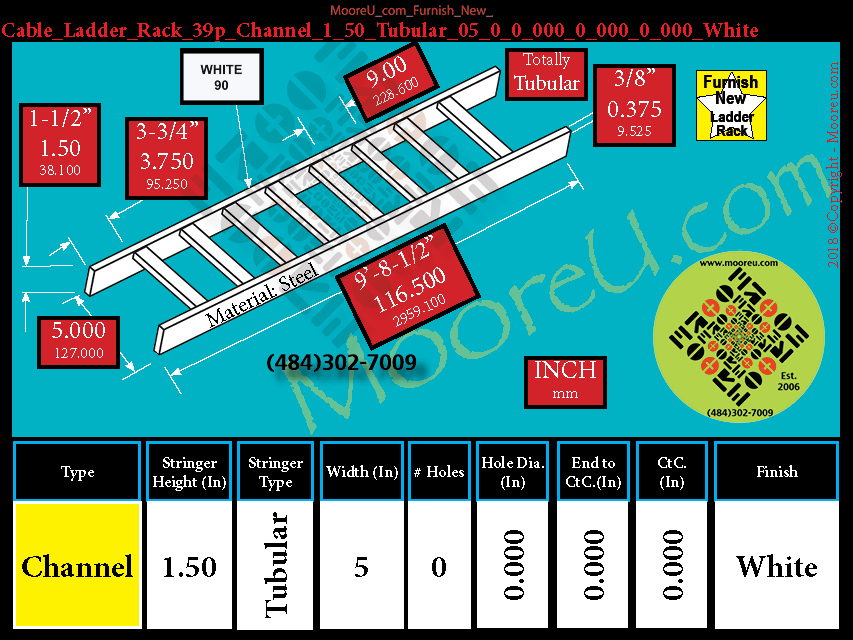 Furnish New Cable Ladder Rack 39p Channel 1_50 Tubular 05 0 0_000 0_000 0_000 White