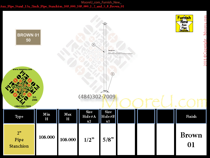 Furnish New Aux Pipe Stand 13a 2inch_Pipe Stanchion 108_000 108_000 1_2_and_5_8 Brown_01