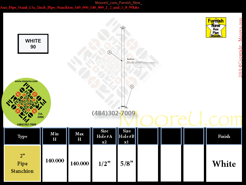 Furnish New Aux Pipe Stand 13a 2inch_Pipe Stanchion 140_000 140_000 1_2_and_5_8 White