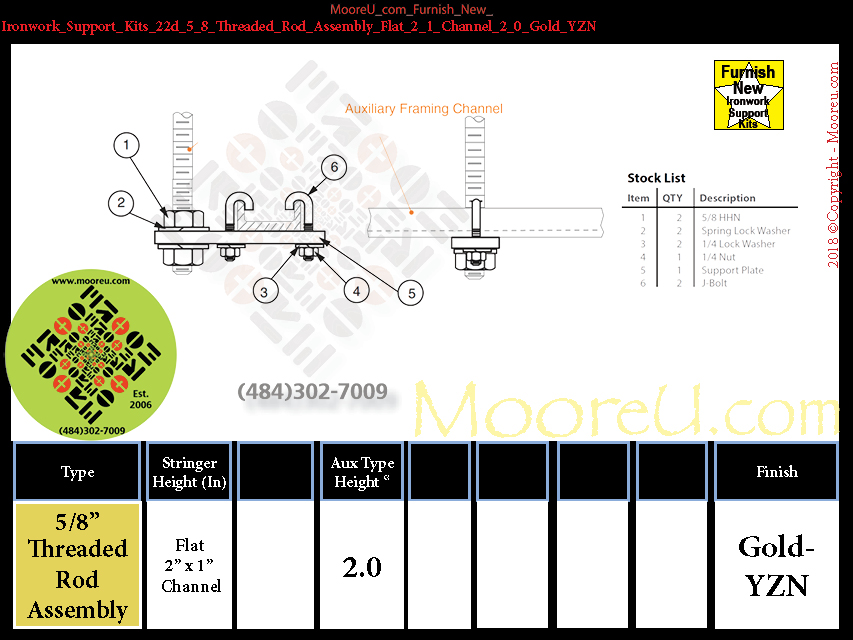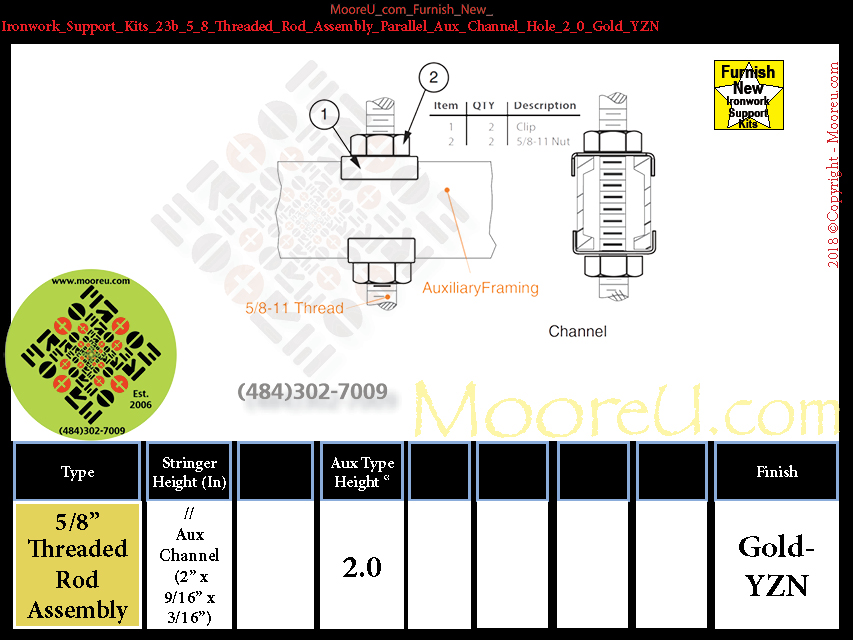 Furnish New Ironwork Support Kits 26a 5_8_Threaded_Rod_Assembly Parallel_Aux_Channel 2_0 Gold_YZN