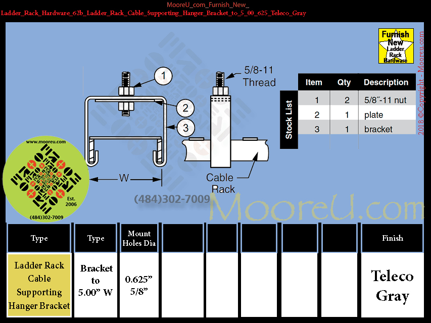 Furnish New Ladder Rack Hardware 62b Ladder_Rack_Cable_Supporting_Hanger Bracket_to_5 00_625 Teleco_Gray