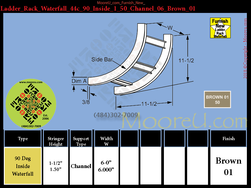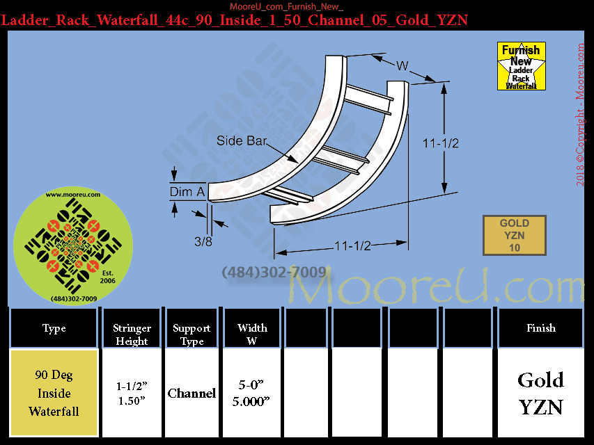 Ladder Rack Waterfall, Each, Color = Blue_07, Degree = 90, Bend Type = Inside, Stringer Construction = Channel, Stringer Height inch = 1-1/2", Width inch = 6, Waterfall Depth In = 11_50, Waterfall Height In = 11_50